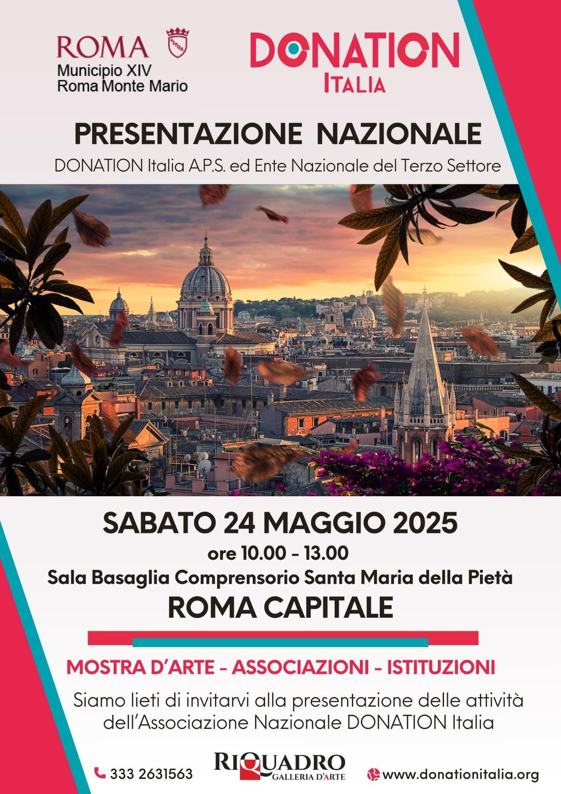 Dopo il successo della tappa Salernitana del 19 Ottobre 2024, Donation Italia A.P.S. arriva a Roma con la sua presentazione ufficiale, fissata per sabato 24 maggio alle ore 10 presso la Sala Basaglia del Comprensorio di Santa Maria della Pietà (Roma).